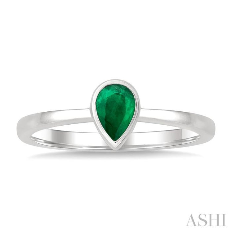 6X4 MM Bezel Set Pear Cut Emerald Precious Solitaire Ring in 14K White Gold