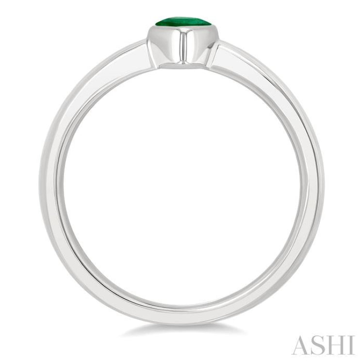 A striking 6X4 MM pear cut emerald takes center stage in this precious solitaire ring, its rich green brilliance enhanced by a refined bezel setting. The pear shape, symbolic of grace and fresh beginnings, brings a distinctive charm to the design, balancing softness with a touch of modern flair. A smooth plain gold shank provides understated elegance, allowing the vivid gemstone to shine as the focal point. Molded in polished rhodium finish 14 karat white gold, the precious solitaire ring beautifully combines simplicity with sophistication, making it a meaningful and stylish statement piece.